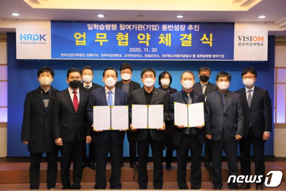 양 기관은 30일 전주비전대 통합멀티미디어컨퍼런스룸에서 ‘일학습병행 참여기관(기업) 동반성장 추진’을 위한 업무협약을 체결했다.