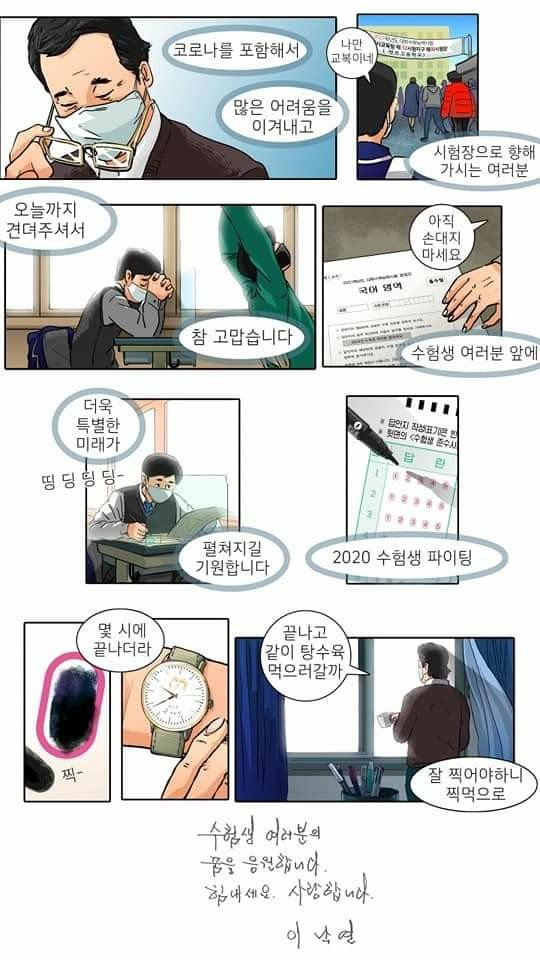 이어 "2020 수험생 힘내시라, 사랑한다"는 메시지와 함께 짧은 분량의 웹툰을 공개했다.