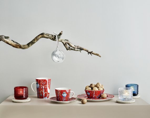 간결하고 실용적인 디자인의 '떼에마'와 핀란드의 자연을 화려한 일러스트로 담아낸 '따이가'의 레드 테이블웨어는 오래도록 지속되는 디자인 제품으로 소중한 이들에게 선물하기에 좋다. 나뭇잎 모양의 양각 패턴이 돋보이는 '헤이키 오르볼라(Heikki Orvola)'의 디자인 미란다 볼과 '가이 프랑크(Kai Franck)'의 디자인 가르티오 텀블러에 크랜베리 색상의 신제품이 추가됐다.