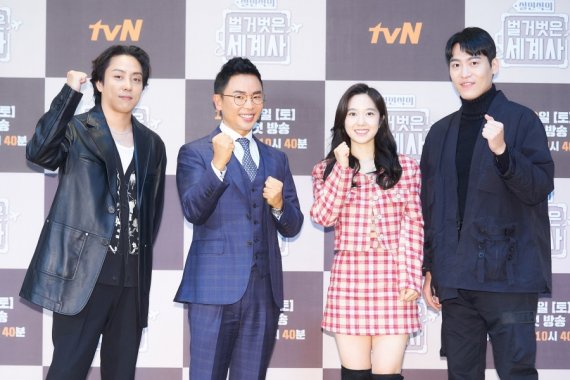 11일 오후 tvN 새 프로그램 '설민석의 벌거벗은 세계사'(이하 '벌거벗은 세계사')의 제작발표회가 열렸다. 이날 제작발표회는 신종 코로나바이러스 감염증(코로나19) 확산 방지를 위해 온라인 생중계로 진행된 가운데, 설민석 은지원 존박 이혜성과 김형오 PD가 참석했다.