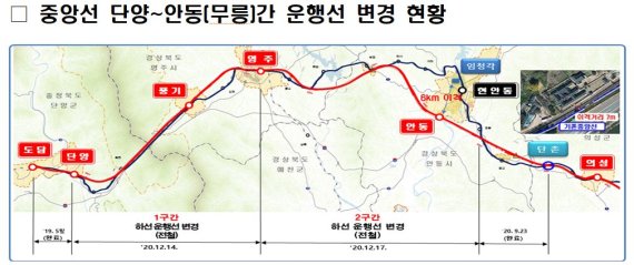 14일에는 단양〜영주 구간, 17일에는 영주〜안동(무릉) 구간을 변경한다.