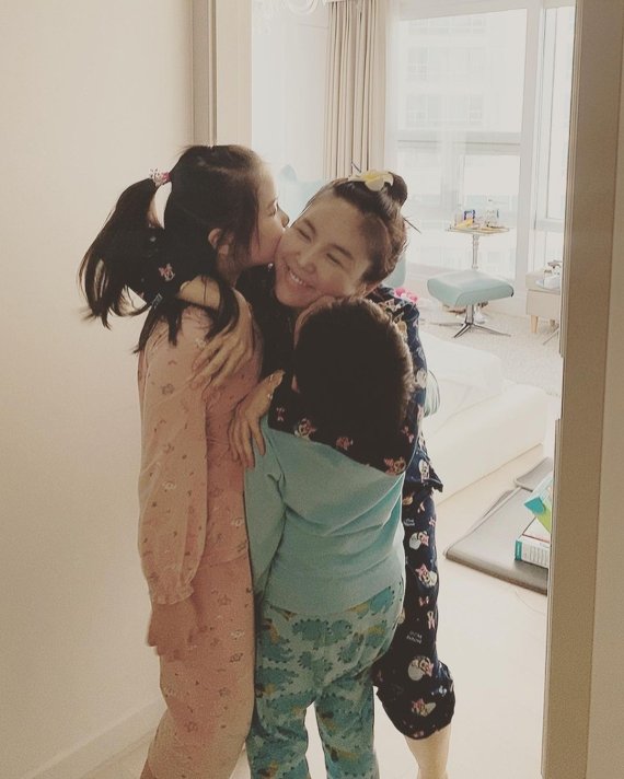 공개된 사진 속에는 장영란이 두 아이와 껴안고 있는 모습이 담겼다. 아이들은 엄마 장영란에게 볼뽀뽀를 하며 애정을 드러내 눈길을 끈다.
