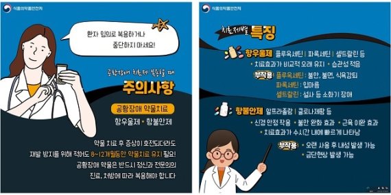 식약처처는 “약물 치료에서 가장 중요한 점은 반드시 정신과 전문의의 진료와 처방에 따라야 한다는 것”이라며 “환자가 임의대로 약을 복용하거나 중단하면 치료가 제대로 이뤄지지 않고 오히려 불안 증상이 더 심해질 수 있다”고 제언했다.