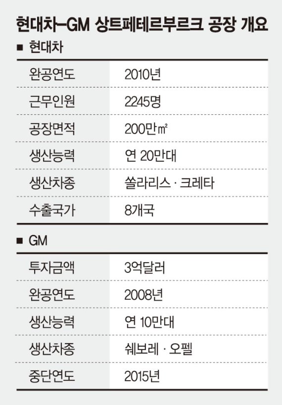 이번에 인수한 GM 공장과의 거리는 직선으로 약 30㎞, 차를 이용하면 40~50분 거리다. 특히 상트페테르부르크에는 현대모비스, 현대하이스코 등 11개 업체가 클러스터를 형성하고 있다는 것도 장점이다. 상트페테르부르크는 러시아 자동차 생산의 25%를 차지하는 자동차 도시이기도 하다. 현대차가 글로벌 브랜드의 생산시설을 인수한 것은 사실상 이번이 첫 사례다.