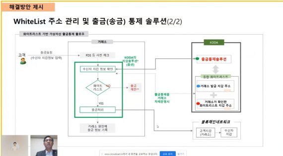 KODA는 가상자산 자금세탁 등 각종 규제리스크를 차단하기 위해 신원확인(KYC) 등 사전에 인가받은 가상자산 지갑에 대해서만 송금을 가능하도록 하는 '화이트리스트' 솔루션을 내년 1월 출시할 계획이다.
