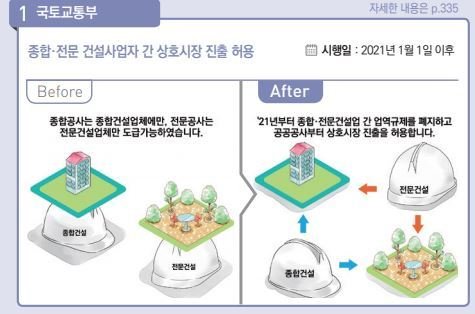 28일 정부가 발간한 '2021년부터 이렇게 달라집니다'에 따르면 내년 1월 1일부터 종합·전문건설업 간 업역 규제를 폐지하고 공공공사부터 상호시장 진출을 허용한다.
