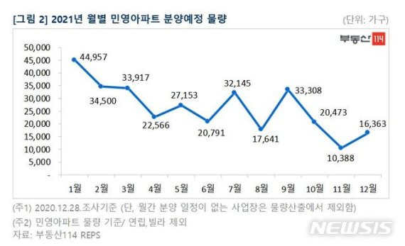 특히 비수기로 평가받는 1월과 7월에도 각각 4만4957가구, 3만2145가구 등 상당한 물량이 예정돼 있다. 정부의 부동산 정책 변화와 신종 코로나바이러스 감염증(코로나19) 이슈 때문에 성수기, 비수기 구분 없이 분양 일정이 결정되는 분위기다.