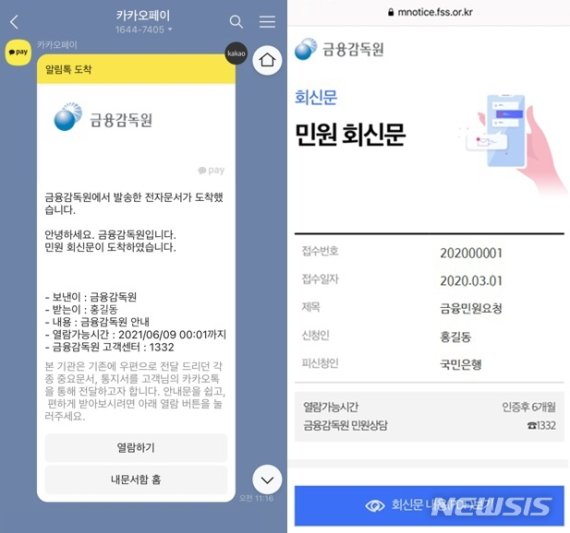 금감원은 민원회신문 모바일 전자고지(통지)시스템을 구현해 민원회신문과 보이스피싱 관련 통지서에 우선 적용한다고 3일 밝혔다.