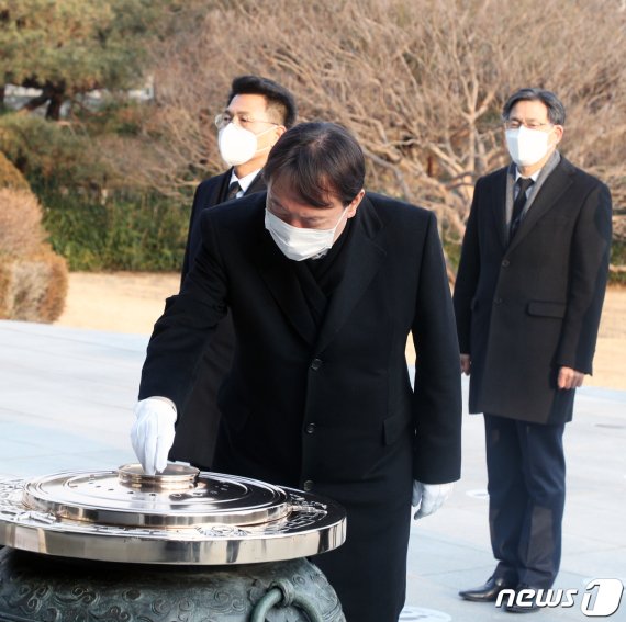 이날 참배에는 윤 총장과 조남관 대검차장, 조상철 서울고검장, 복두규 대검 사무국장, 정연익 서울고검 사무국장 등 5명이 함께 참여했다.