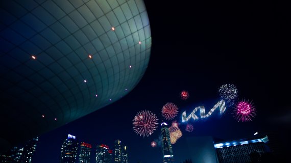 기아차는 이날 디지털 채널을 통해 '로고 언베일링 행사'를 열어 신규 로고와 브랜드 슬로건을 공개하고 브랜드 변화를 선포했다. 행사는 총 303대의 드론이 하늘에서 불꽃을 내뿜으며 새로운 로고를 그리는 형식으로 진행됐다.