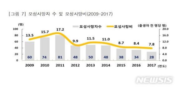 특히 2017년 기준 지역별 모성사망비는 강원도가 33.5명으로 가장 높았는데 이는 전국 평균(7.8명)의 4배가 넘는 수치다.