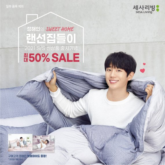 이번 이벤트는 세사리빙 전국 대리점에서 1월 한 달간 진행된다. 미리 만나보는 세사리빙 2021 S/S 제품 ‘세사리빙X정해인 NEW 컬렉션’이 최대 30% 할인된 가격에 제공된다. 솜을 넣을 필요 없이 그대로 사용할 수 있는 ‘힐링솜 차렵 이불세트’도 최대 50% 할인된 가격에 만나볼 수 있다.