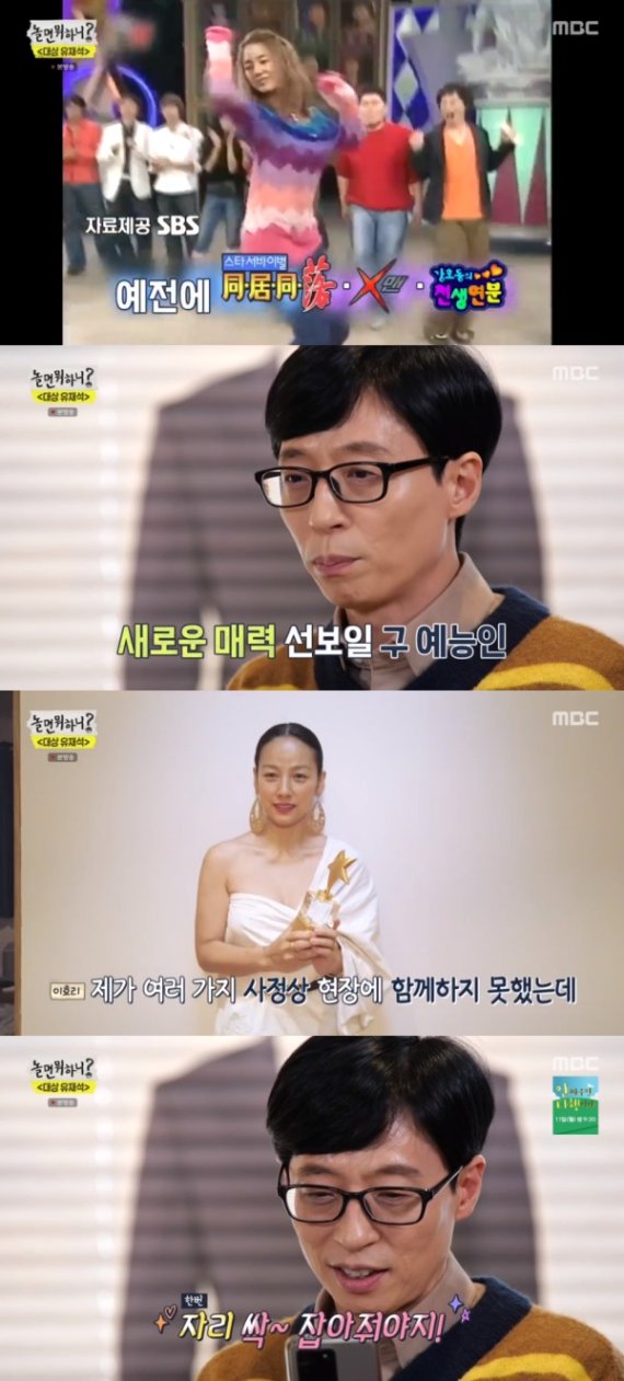 유재석은 이효리에게 전화했다. 이효리는 유재석에게 축하 인사를 건넸고, 유재석은 "네 덕분이다"고 화답했다. 유재석이 시상식에서 화제를 모은 이불 드레스에 대해 묻자 이효리는 "이틀 전에 트로피가 택배로 왔다. 상 받는데 트레이닝복 입기 그래서 그랬다"고 설명했다. 유재석은 "너는 예능 천재다"며 감탄했다.