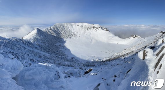 나흘 동안 폭설이 내린 한라산 윗세오름(해발 1668m·제주도 비공식 측정)에서는 최고 150.0㎝, 어리목(해발 965m·기상청 공식 측정)에서는 최고 89.3㎝의 누적 적설량이 관측됐다.