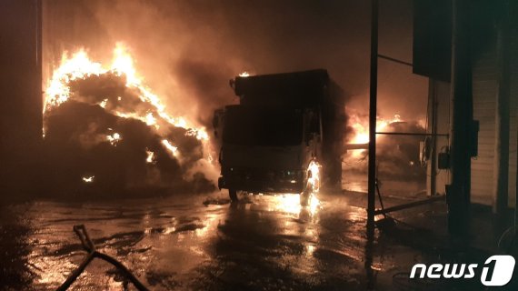 (포천=뉴스1) 이상휼 기자 = 18일 오후 8시44분께 경기 포천시 화현면의 한 폐기물처리업체에서 불이 나 5시간 만에 꺼졌다.