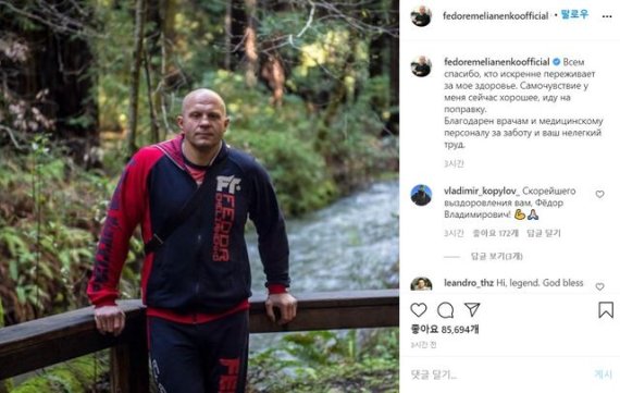 예멜리야넨코는 이날 자신의 사회관계망서비스(SNS) 인스타그램에 "건강을 걱정해주는 모든 분에게 감사를 드린다. 현재 기분은 좋고 회복되고 있다. 의료진의 노고에 감사드린다"고 했다.