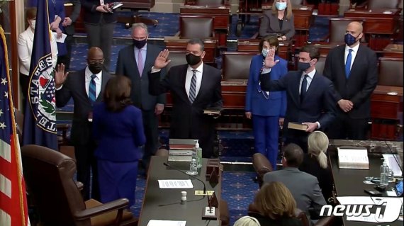 (서울=뉴스1) 장용석 기자 = 미국 민주당이 조 바이든 행정부 출범과 함께 연방 상원의회에서도 '사실상' 다수당 지위를 차지했지만 벌써부터 공화당의 견제가 만만치 않은 모습이다.