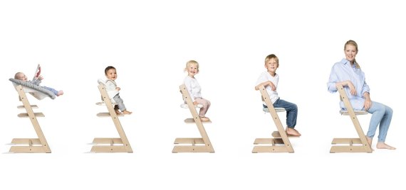 트립트랩은 1972년 스칸디나비안 디자인의 거장 피터 옵스빅(Peter Opsvik)이 어른용 의자에 불편한 자세로 앉아 식사하는 아들의 모습을 보고 디자인했다.