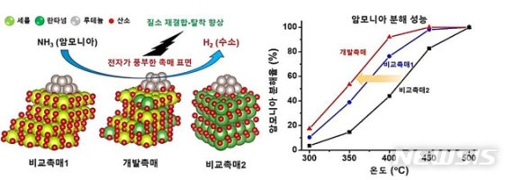 이변 연구서 채 박사팀은 질소의 재결합-탈착 반응의 활성화에너지를 낮춰 암모니아로부터 수소를 고효율로 생산할 수 있는 촉매를 새로 개발했다.