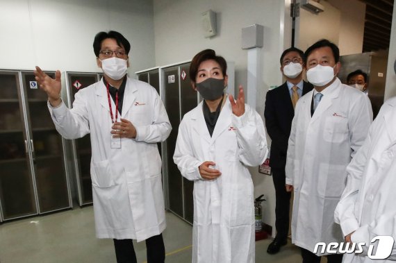 나경원 전 의원은 25일 경기 성남 판교에 위치한 SK바이오사이언스 본사를 방문해 연구진을 격려하고 코로나 백신 생산 현황과 개발에 필요한 지원 등을 논의했다.