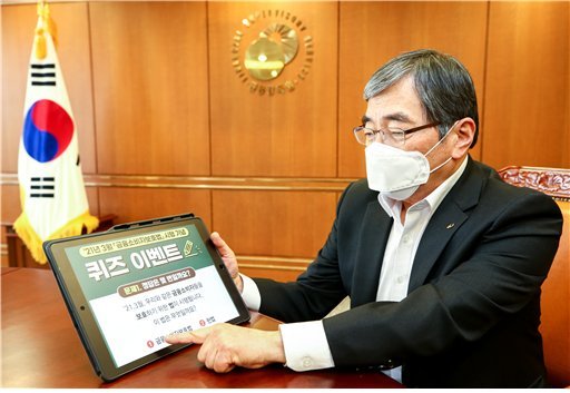 윤석헌 금융감독원장은 이날 객관식 퀴즈에 1호로 참여하며 "금소법 시행으로 올해가 금융소비자 보호의 원년이 될 것으로 기대한다"며 "이번 행사가 금소법에 대한 시민의 관심이 높아지는 계기가 되기를 희망한다"고 말했다.