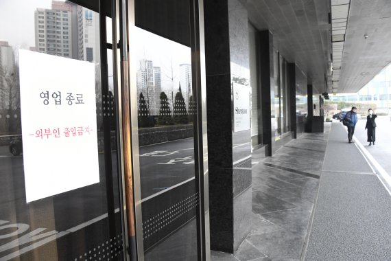 코로나19 장기화로 호텔 등 숙박업 경영난이 지속된 가운데 1일 서울 서초구 쉐라톤 서울 팔래스 강남호텔에 영업 종료 안내문이 붙어 있다. 이 호텔은 1982년 반포 팔래스호텔로 시작한 강남 최초의 특급호텔로 코로나19 확산세에 지난해 1~3분기 매출은 전년 동기 대비 40% 감소한 169억원을 기록했고, 영업손실은 19억원에서 86억원으로 껑충 뛰었다.