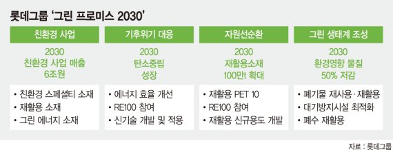 김교현 롯데그룹 화학BU(사업부문)장 겸 롯데케미칼 대표이사는 2일 친환경 사업 매출 6조원 달성 및 탄소중립성장 추진 등을 골자로 한 '그린 프로미스(Green Promise)2030'을 발표했다.