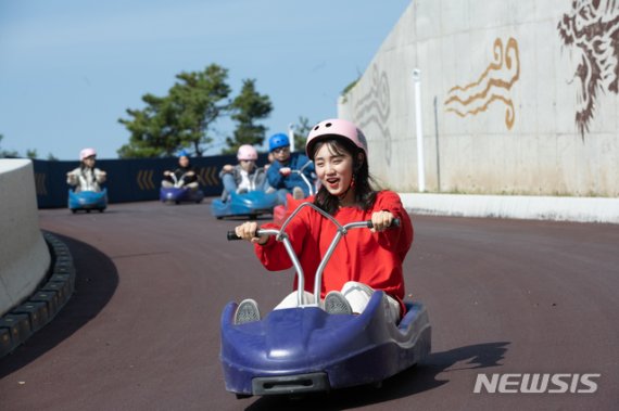 루지 코스는 폭 5m, 길이 1.88㎞로 가파른 트랙을 하강하며 야간운행도 즐길 수 있다.