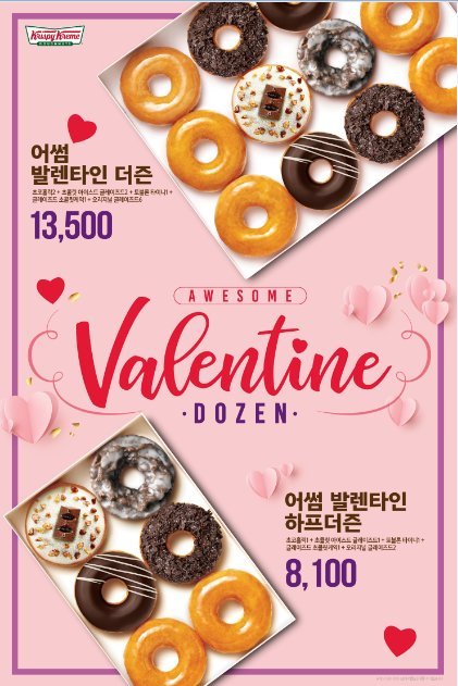 크리스피크림 도넛 관계자는 "추운 날씨와 제한된 외부활동으로 자칫 우울해질 수 있는 요즘 시기에 크리스피크림 도넛에서 준비한 달콤한 이벤트로 어썸(Awesome)한 발렌타인데이를 보내시길 바란다"라고 전했다.