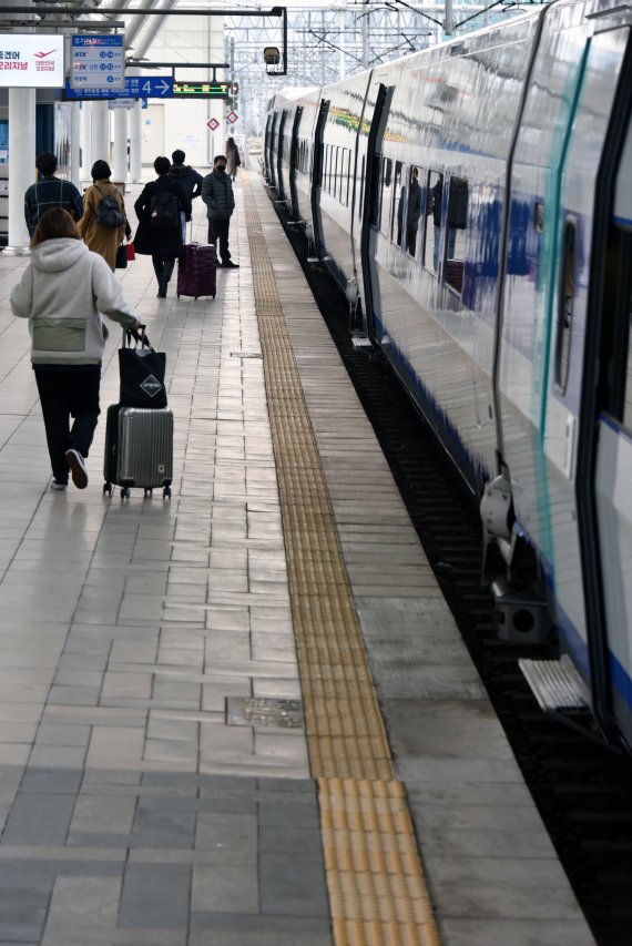 설 연휴를 하루 앞둔 10일 서울역 승강장에서 시민들이 열차에 타기 위해 이동하고 있다. 사진=서동일 기자