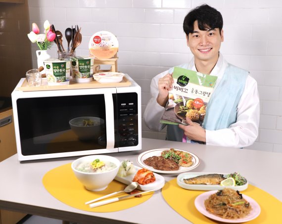 설 명절 대표 음식인 떡만둣국은 '비비고 사골 컵만둣국'과 '즐거운동행 미정당 우리땅 우리쌀 떡국떡'을 활용했다. '비비고 도톰 동그랑땡'과 '비비고 남도떡갈비' '비비고 잔칫집 모둠잡채' '비비고 고등어구이' '비비고 김치'를 더해 1인 상을 풍성하게 차렸다.