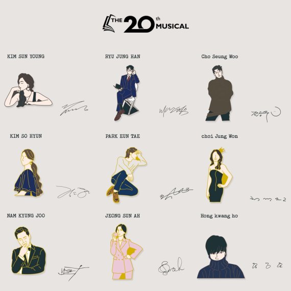 김선영, 김소현, 남경주, 류정한, 박은태, 정선아, 조승우, 최정원, 홍광호(가나다 순)로 구성된 배지 세트는 '더뮤지컬' 화보 사진을 바탕으로 만든 핀 배지 기념품이다.