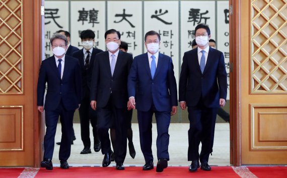 문 대통령은 특히 "우리에게 주어진 시간이 많지 않은 것은 사실"이라며 "하지만 주어진 시간 내 가시적 성과를 올리기 위해 서두르진 말라고 당부드리고 싶다. 차근차근 접근해 주시기 바란다"고 강조했다.