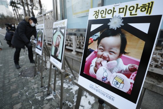 정인양은 지난해 1월 양모 장모씨, 양부 안모씨 부부에게 입양돼 같은해 10월 서울 양천구의 한 병원에서 치료를 받던 중 숨졌다. 정인양은 사망 당시 췌장이 절단되는 심각한 복부손상을 입은 상태였다.