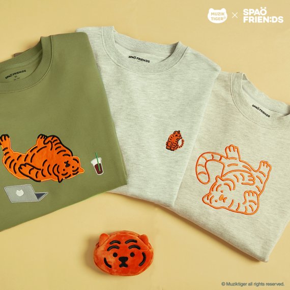 이번 상품은 무직타이거의 대표 디자인 '뚱랑이'를 자수로 새겨 넣어 따뜻한 느낌을 더했다. 종류는 스웨트셔츠와 팬츠 각 5종으로 제품마다 자수 디자인과 크기를 다르게 적용했다.