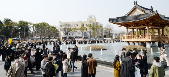 그러면서 "아무래도 학위수여식 행사가 오늘 진행되면서 지난 주말보다 좀 더 많은 학생이 몰린 것 같다. 확산 우려가 없도록 신경 쓰겠다"고 덧붙였다.