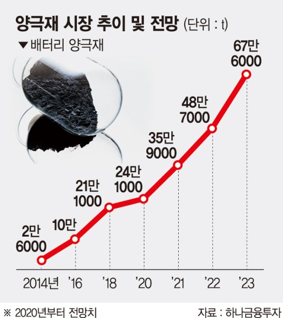 이들 업체들이 양극재 내재화에 나선 이유는 전기차 시장의 폭발적인 성장 때문이다. 배터리 수요도 함께 폭증하면서 배터리 소재 확보 경쟁이 치열해지는 양상이다. 특히 양극재는 배터리 성능을 좌우하는 핵심 소재로 배터리 원가의 40%가량을 차지한다. 2014년 2만6000t에 불과하던 양극재 수요는 2019년 23만7000t으로 9배 이상 확대됐다. 2019년 6조원 규모를 보였던 양극재 시장은 2023년 18조원으로 3배가량 늘어날 전망이다.