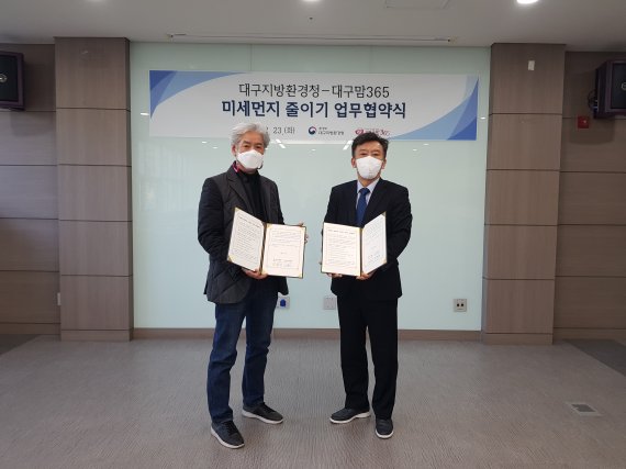 [대구=뉴시스] 이은혜 기자 = 대구지방환경청은 23일 대구·경북지역 맘카페 대구맘365와 미세먼지 저감 정책 홍보 등을 위한 업무협약을 체결했다.