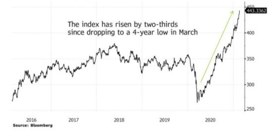 이날 지수 상승세를 부추긴 건 구리다. 산업 전반에 쓰여 경기전망의 가늠자로 여겨져 온 구리 가격은 이날 2011년 이후 처음으로 톤당 9000달러대에 올라섰다.