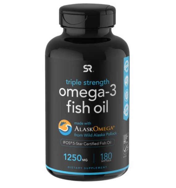 '스포츠리서치 오메가3'는 약사 유튜버가 건강관리를 위한 핵심 영양제 조합인 '오마비'(오메가3·마그네슘·비타민B)를 소개하며 유명세를 탔다. 자연산 알래스카 명태에서 추출한 양질의 어유로 만들어 세계정제어유표준(IFOS)으로부터 최고 등급 5스타를 획득했다. DHA와 EPA 함량은 950㎎이다. 엄격한 검사를 통해 각종 유해물질과 중금속으로부터 안전성을 입증 받았다. 글리세롤을 함유한 알티지 오메가3로 체내 흡수와 생체이용률이 우수하다. 오메가3 특유의 비린 맛이 나지 않는다.