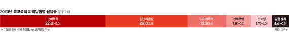 이는 지난해 조사보다 2.8%포인트, 3.4%포인트 늘어난 규모다. '학교폭력'으로 흔히 떠올리는 신체폭력이나 금품갈취는 각각 7.9%, 5.4%에 불과했다.