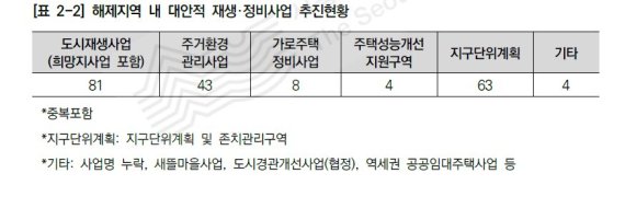 해제지역은 △주거환경 악화 △빈집증가 △난개발 등의 문제가 불거질 수 있으며 붕괴, 범죄 등 안전상 위험과 주민불안감은 더욱 높아져 안전관리가 필요한 상황이다.