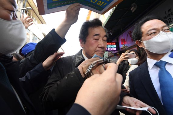 (춘천=뉴스1) 김정호 기자 = 지난 5일 춘천을 찾은 이낙연 전 더불어민주당 대표에게 계란을 던졌던 단체가 1년 전 경기도청 앞에서 이재명 경기지사를 지지하는 행사를 가졌던 것으로 확인돼 논란이 일고 있다.