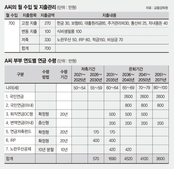 주부인 A씨(50)는 남편의 은퇴 후 월 300만원의 연금을 수령하기 위해 은퇴자산을 점검하고자 한다. 남편은 아직 신체적으로 문제는 없지만 건강한 노후를 위해 향후 5~10년가량 일하고 은퇴하는 것을 고려하고 있다.
