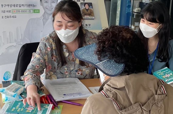 동구여성새일센터는 이날 방문 민원인을 대상으로 구직상담을 실시하고 현재 새일센터에서 모집 중인 집단상담 프로그램 및 직업교육훈련 일정을 소개했다.