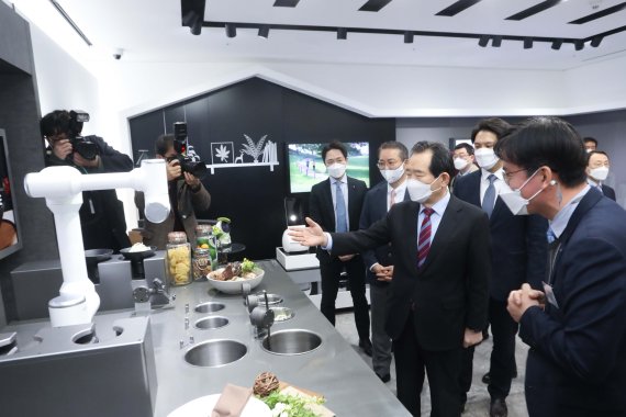 이날 정 총리는 대기업과 스타트업간 상생협력 현장을 살펴보고 관련 방안에 대해 논의했다. 이 자리에서는 LG의 스타트업 육성 프로그램에 따라 LG사이언스파크에 입주해 있는 이해라이프스타일 김남석 대표, 룩슨 황정섭 대표, HITS 김우연 대표가 참석해 자사가 보유한 기술을 소개했다.