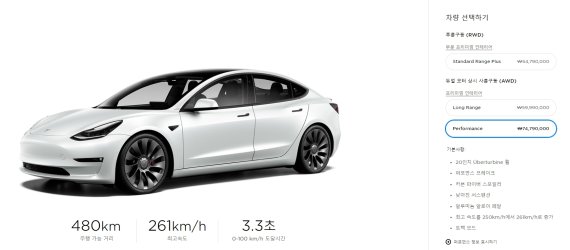 18일 업계에 따르면 테슬라코리아는 최근 카드사와 손잡고 모델3 스탠다드 롱레인지 플러스와 퍼포먼스 트림에 한해 7% 할인 행사를 실시했다. 삼성, SK 등 국내 주요기업 임직원들 대상이다.