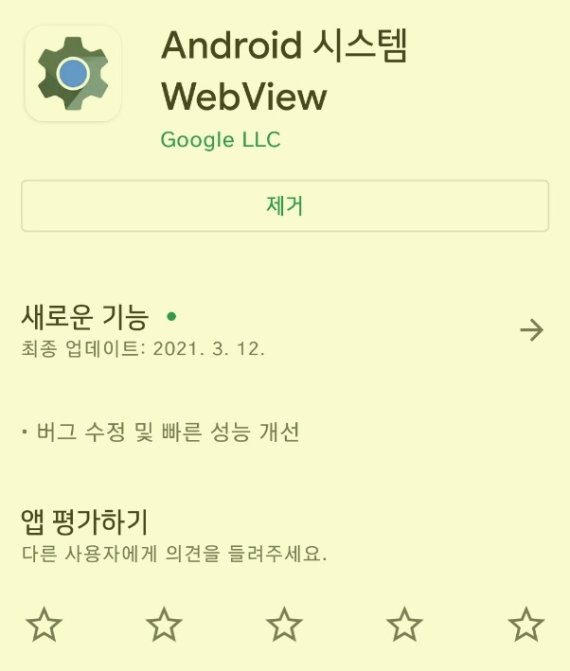 오류는 구글플레이에서 '안드로이드 시스템 웹뷰'(WebView) 앱을 제거하고 폰을 재부팅하면 대부분 해결된다.