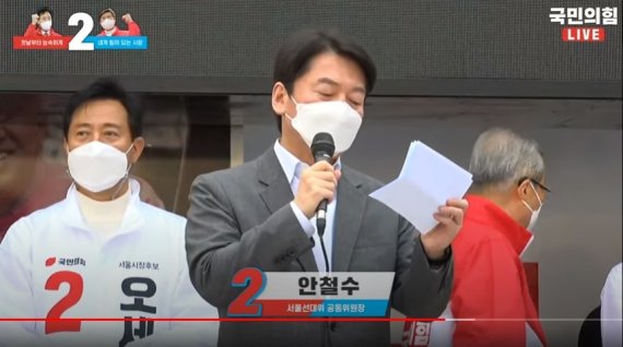 이날 오 후보 캠프와 국민의힘의 핵심 유세현장은 시청역이었다. 서울시장 보선의 상징적인 의미가 있는 시청 앞에서 당 지도부와 공동선대위원장 등이 약 2주일간의 선거 레이스를 주도하겠다는 게 캠프의 전략이었다고 한다.