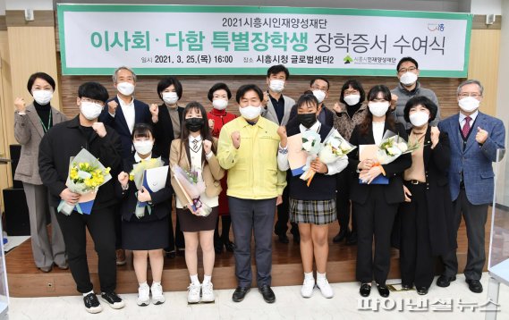 【파이낸셜뉴스 시흥=강근주 기자】 시흥시인재양성재단은 25일 시흥시청 글로벌센터에서 2021년 ‘다함께 특별장학생’ 838명에게 장학증서를 수여했다.